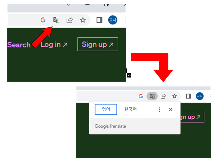 이페이지 번역하기 누르고, 한국어 클릭하면 끝!